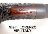 VINTAGE! UNSMOKED! Lorenzo - Black K6 Rustic. Large wide bowl. Original Lucite stem with 9mm. tenon and reducer insert. Sitter. Oval shank. Shank: Lorenzo, VIP, ITALY. Stem: "L". Lorenzo logo cloth sleeve included.
