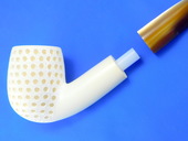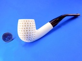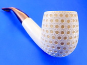 PRIVATE COLLECTION - HALF-BENT BILLIARD with mini-lattice. Carver in the 1990's by Master carver Latif Siyah, decreased. One piece delrin tenon. Italian Lucite tapered stem. Custom-fitted velvet-lined SMS logo case to protect the beauty of the pipe.