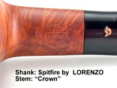 VINTAGE - Unsmoked! Lorenzo Spitfire ASTORIA - 1/4 Bent APPLE - with rich matte finish and medium bowl. The oval stem is vulcanite with a regular tenon. Shank: Spitfire by Lorenzo, FANTASIA, ITALY. Stem: "CROWN." Cloth sleeve included.