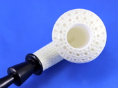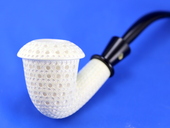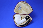 FERRULED CALABASH - Full-bodied Calabash with ferruled (two piece) black stem. Mini-Lattice finish. Extra-Large bowl. Kidney-shaped fitted case.