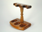 3-pipe rack. Solid Teak wood. Hand-rubbed polished finish. Felt pad on base. Imported.