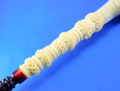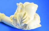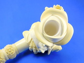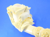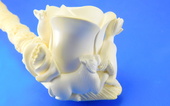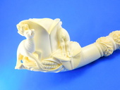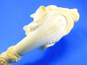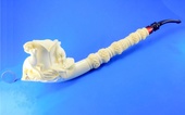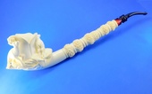 LIMITED EDITION! Unique interprtation of a classic theme. Stag , Doe and Carved & signed by Master Carver Salim. Rose shaped bowl with decorated shank. Saxaphone/Extra-long shank - Meerschaum = 6.25 in/15.5 cm - Overall - 9.25 in/23 cm. Original custom-fitted SMS logo case.