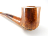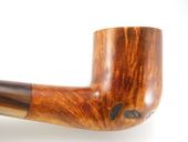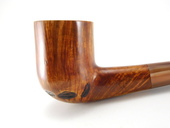 BILLARD - Quarter-bent Billiard. Extra-large bowl. Oval rusticated spots on the bottom of the bowl. Tapered Lucite stem. Leather pipe sleeve included.
