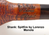 VINTAGE - Unsmoked! Lorenzo Spitfire MANOLA with light sandblast finish and large bowl. The stem is acrylic with 9mm. tenon/reducer insert. Shank: Spitfire by Lorenzo, Manola Stem: "SP" Lorenzo logo cloth sleeve included.