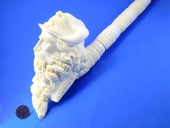 VIKING Chief with eagle between bull horns on his helmet. Massive bowl! Saxaphone (multiple sections) shank insures a cool smoke. Signed by Erdogan.Custom-fitted Velvet-lined SMS logo case included.