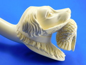 PRIVATE COLLECTION - HUNTER'S PAL - The faithful bird dog waits your command! Signed by Yunus. Carved in the 1990's. Custom-made large & deep tobacco chamber. Tortiose shell colored saddle stem. Original custom-fitted case with SMS logo inside lid.