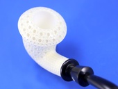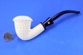 FERRULED CALABASH - Full-bodied Calabash with ferruled (two piece) black stem. Mini-Lattice finish. Extra-Large bowl. Kidney-shaped fitted case.